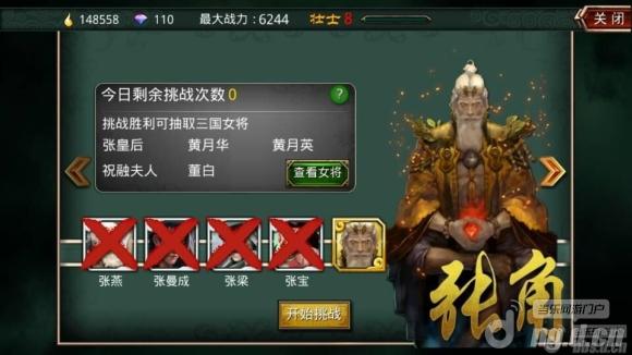 其实这是我偶然发现的,大家在打挑战的时候每天有两次失败的机会,失败后仍然能抽卡,前面几个抽的卡我就不说了,卡在张角这里,每天会有两次机会抽取到黄月华的金卡。
