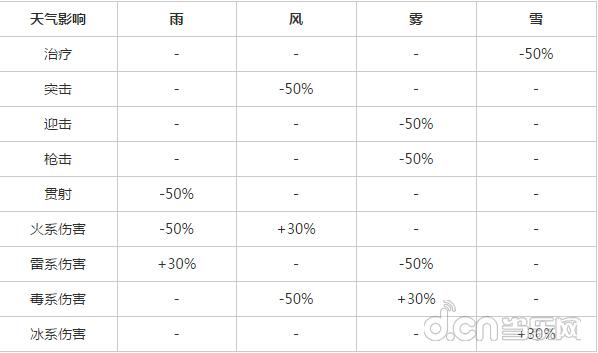 目前只有三种天气:雨雾风,“雪”还没有进入游戏。