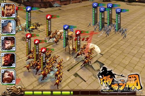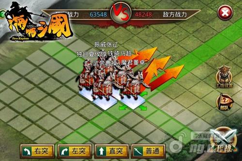 特别要注意的是,冲锋要突击吴国后排还是很有难度的,一般弓兵会跟枪兵抱团,冲过去就是撞枪口了。这时箭塔机关的作用就很突出了。布阵最左前方设置一箭塔,吴国的枪兵开场就会先跑过去打掉箭塔,由于弓兵的攻击距离比较远,因此弓枪必然分离。此时右方突击的骑兵直接撞到弓兵上,不能给他们放技能的机会,直接突击撞死。然后剩下的枪兵就要靠鬼神吕布或者独目夏侯惇弱化强上,五骑抱团砍还是很有威力的。