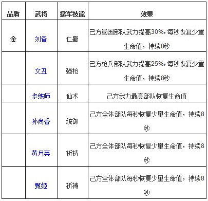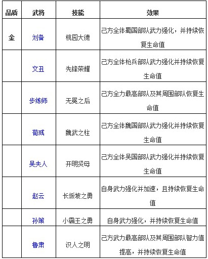 啪啪三国中的武将技能都是以强化弱化为主,回血的武将非常稀少,所以,拥有一个回血技能的武将让团队的续航能力大大改善,更容易取得胜利和5星。以下就是啪啪三国中带有回血技能的金卡武将。