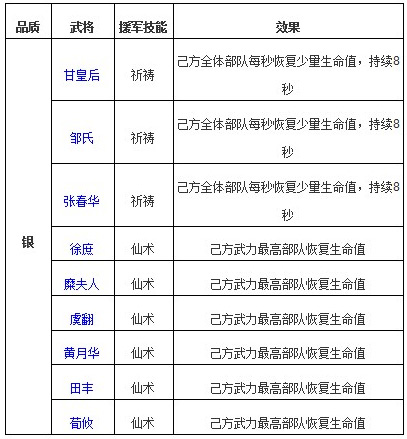 《啪啪三国》治疗系列全金银卡武将一览