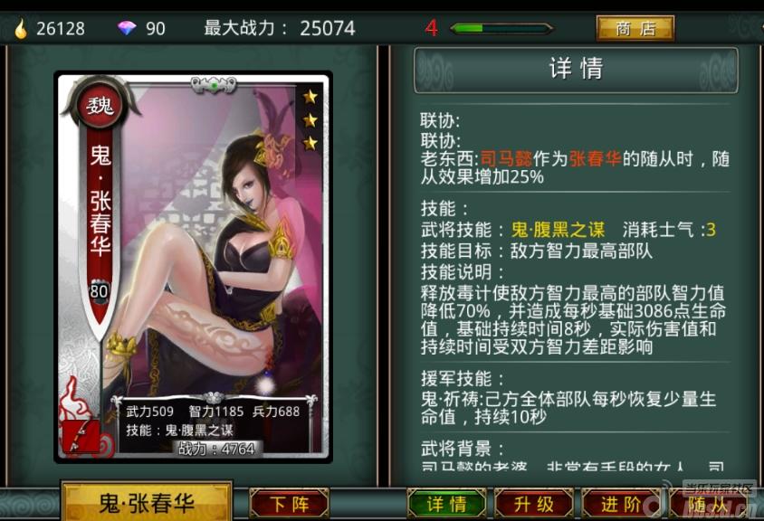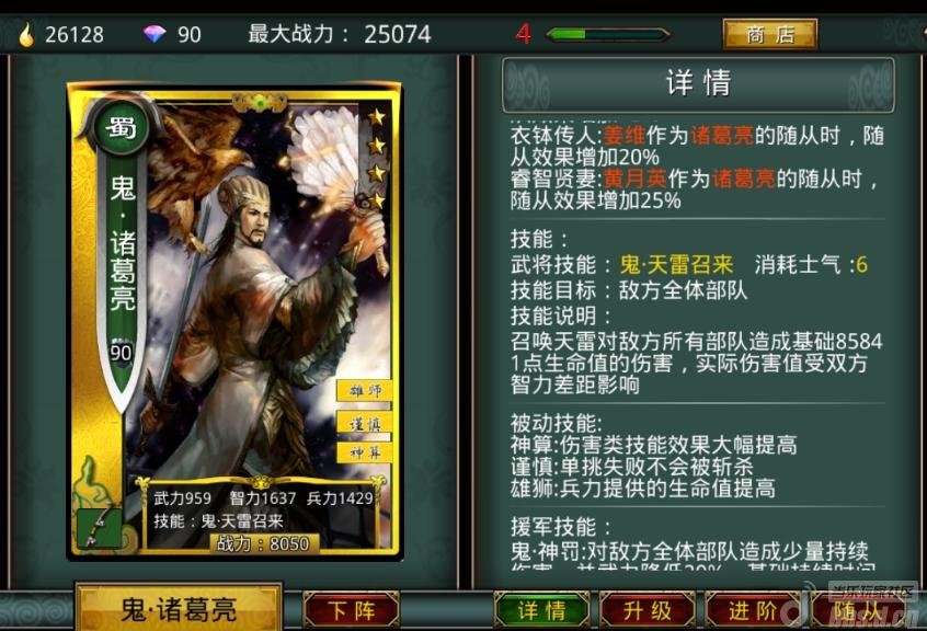接触啪啪三国也快两个月了,每天就盼望着抽到好卡,无意中,抽到了这个传说级法神——诸葛亮。当时我不识货,看着这头猪耗8士气,去一边吧,老子哪有时间给你攒气啊。于是乎,我坚定了一个信念,玩自己的五骑,让诸葛看去吧,干脆,发配边疆,管理封地,幸亏没吃他啊,不然现在哭的心都没有了。后来玩着玩着,懂得了猪哥的霸道之处,我就厚着脸皮,效仿备哥“三顾茅庐”,从封地把他接回来,给他赠宝石(贪财),添侍女(好色),配随从(弄权),纳小妾(尼玛,老猪吃嫩草啊!)……还别说,在小老婆的影响下,猪哥闻声就下雷。娇滴滴的“打死你”,猪哥一听,两眼放光“女神,赐给我力量,惩罚我的敌人吧——”〖咔嚓───〗,对此,罪过啊,我承认是我用奸计去魏国抢来了小王异,目的就是魅惑猪哥为我所用。看着竞技场的敌人一个个魂飞魄散,我感叹道:看来,女人的魅力真是不容小觑啊!