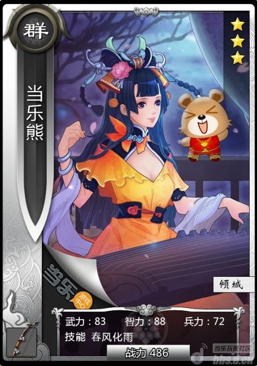 在这天,当乐为《啪啪三国》玩家准备了特殊的礼物——当乐独家专属卡:当乐熊,参与牵红线活动即可获得!