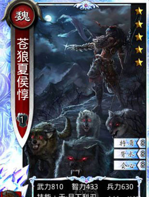 个人点评:坑爹武力范围伤害系统,你要是冲着这个去的那就算了,不过高武力,神被动,不错的连携使得苍狼成为仅次于一骑的菜刀。综合来看,司马队,魏5骑,需要一个菜刀就上一骑,还想上个菜刀就是苍狼了。