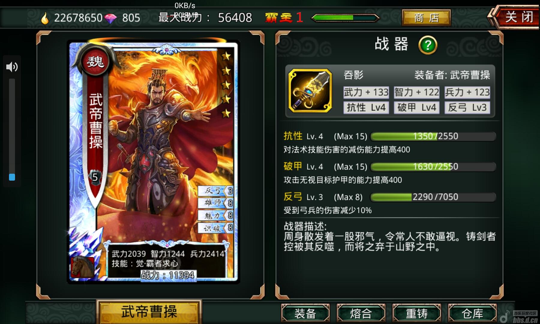 4、如果你这时候有曹操,并且贪图20%的法伤减免,可以五星了换曹丕。建议鬼100升5级五星就好了。因为识破效果和等级无关,一级五星也是20%。而且现在的曹操和其他两个君主五星卡比起来,真是弱到爆,没有升值的价值。