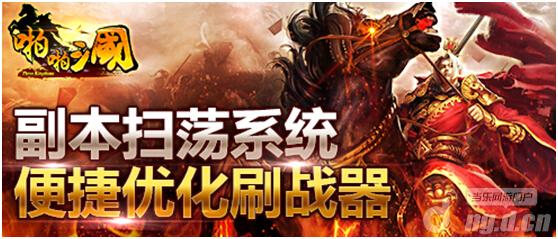 新增的装备系统想必已经让各位主公迫不及待,想要冲进关卡进行连番厮杀。莫急莫急,且听小编一言,《啪啪三国》2.5新版本还会上线一个非常便捷的优化功能——副本扫荡。当主公想要刷装备的时候,点击副本扫荡按钮即可进入扫荡模式。等过一段时间后,再上线就会有一大波装备收入囊中。妈妈再也不用担心我的小手机了!