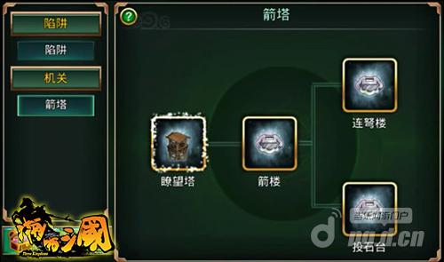当箭塔科技点满后,输出能力非同小可。但由于箭塔血量有限的,而且不受我方武将回血技能影响,因此需要我方武将在前方顶住敌军的攻击。布阵的时候需要将箭塔设置在两军接触点的后方,有良好的输出环境后,高级箭塔摇身一变成暴力弓,持续伤害叠加起来也是相当可观。