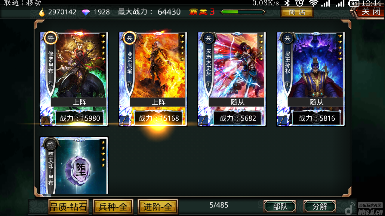 如图 现在可以弄吴国队 ,可惜激动了把司马给合称5星周瑜了,结果忘了留传承卷了, 结果现在弄得阵容不伦不类,晕了。强烈要求增加传承卷的出处,或者降低传承卷的价格,貌似现在100元=10个,太贵了,希望可以一元一个,让大家可以体验更多的阵容带来的游戏快感, 体验不同阵容组合不同卡片,体验游戏不同魅力,这不也是游戏公司的初衷吗? 希望板斧反映下附图现在阵容很恶心,还不好换, 无语了。