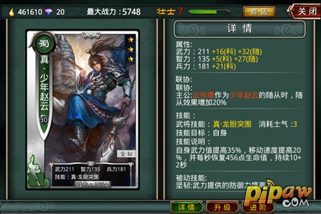 岛国全民级街游“三国志大战”完美移植~ 全3D视角的恢弘战役场景,让您随心操控麾下部队,百种武将选择搭配倾尽策略,华丽技能组合颠覆您的视觉!24K纯度历史还原,您将成为三国之外的第4势力,一统版图,成就霸业。诸葛亮 司马懿 周瑜 神算军师呕心辅佐,吕布 赵云 猛将军神摧城拔寨。更有绝世佳人小乔貂蝉垂膝相伴,完美画风让您欲罢不能。啪啪三国,内涵的不止是名字。[详情]
