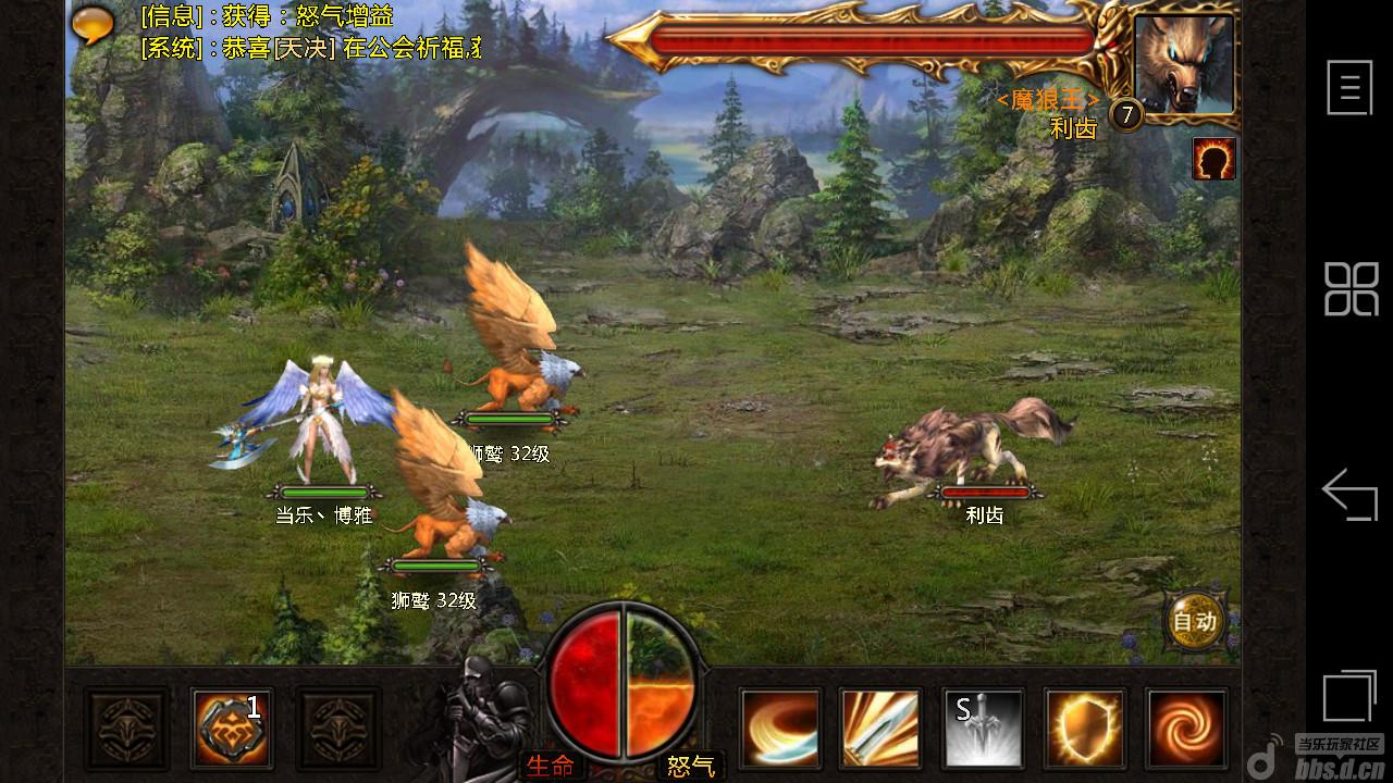开启了城堡的大门就可以来到BOSS区了,BOSS是魔狼的首领,叫利齿,等级7级,别看头像凶凶的,其实并不难打,跟他的小弟们差不了多少,因为是第一次的副本嘛,先给你点甜头尝尝。