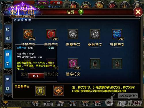 获得不错的符文后,玩家只要将其装备到技能区上,就可尽情享受符文毁天灭地般的效果了。符文威力巨大,因此每次最多只能携带两个符文,而符文使用的次数则受到符文等级限制。想要获得更为强劲的战斗效果,那就抓紧时间升级符文吧!