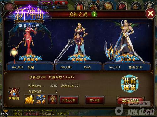 凡是角色等级在50级以上的玩家均可参与“众神之战”比赛。所有参赛选手需经过预赛筛选。玩家进入比赛场后,系统自动在同职业,积分相近的选手中进行匹配,积分相同则随机匹配。每位玩家可匹配15次,每场战斗最多持续3分钟。