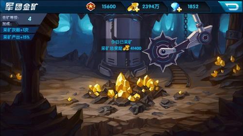 向右便是金矿功能,军团中的团员每天可以从军团金矿中获得免费获得金币的次数,还可以消耗钻石获得更多的金币,后期来讲呢,金币还是很缺乏的。