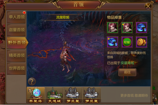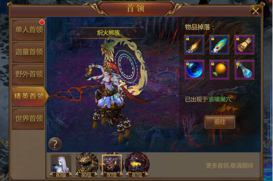 3、场景boss掉落的方式是以队伍为单位,boss死亡时,最高伤害的队伍获得boss的归属权,并队伍成员均有概率获得掉落奖励。其他有对boss造成伤害的玩家都能获得参与奖励!