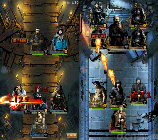 我们先来看剧情,走到目前为止,基本每个副本场景都会伴随有剧情的发生,改编自原作的剧情自然十分引人入胜,而且这次的盗墓小队是由玩家参与其中的,更能够身临其境的体验犯罪冒险的刺激感。战斗画面是敌我双方卡牌互相移动攻击,开了2倍加速后我们就可以看到两张卡片互砍的画面了。