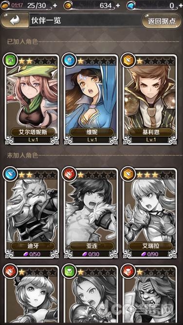 点击首页的【队伍】按钮,再点击【伙伴】按钮即可进入伙伴界面,伙伴界面会显示已加入的伙伴以及未加入的伙伴;