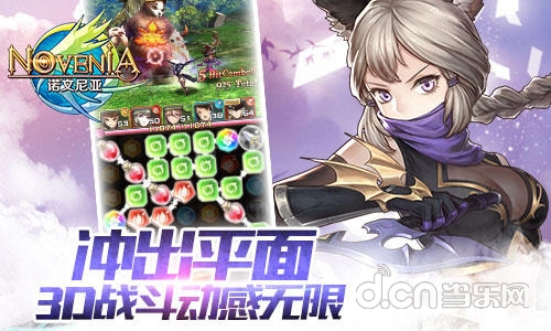 《诺文尼亚》邀请了国内外一流插画师参与画面制作,精美的人物立绘十分生动,在战斗画面上也摒弃了平面呈现的方式,采用3D画面展现战斗过程,在享受一连到底的激爽和连珠爆炸的快感时,对应有英雄角色施展华丽技能,展开3D激战的画面,将畅快战斗完美诠释,真实立体的3D战斗场景使玩家能同时体验到消除和RPG引爆的双重快感。