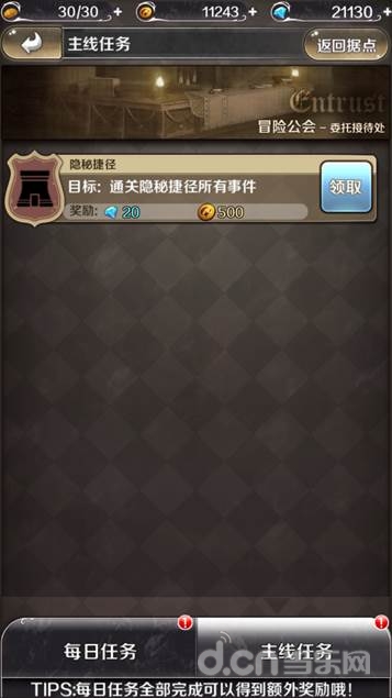 主线任务不可重复领取,完成且领取奖励后消失。完成主线任务后会获得钻石及金币奖励;