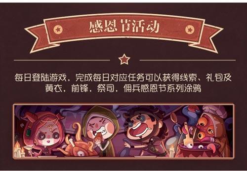 ② 【感恩节活动】:每年11月第四个星期四是感恩节,大家会在这一天欢聚一堂,分享美食,大厨哈斯塔也在庄园里准备了盛大的派对。活动期间(11月22日维护后至11月25日23点59分59秒),完成每日任务即可获得;
