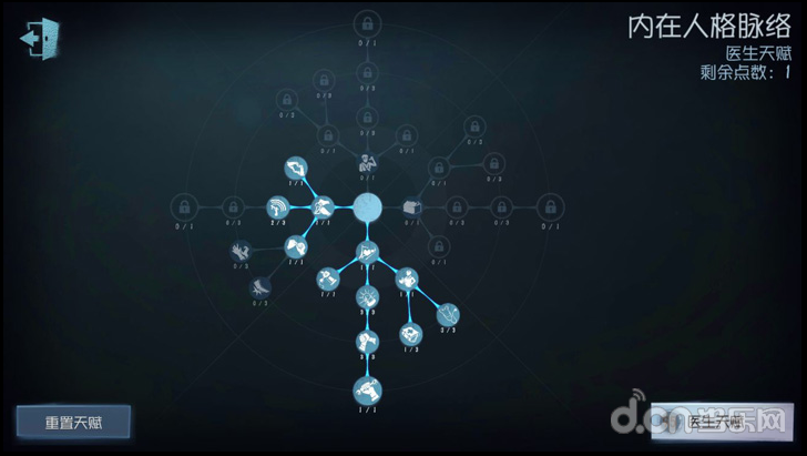 医生—属于辅助性人物主要是配合溜屠夫的人物进行救人平时只要修发电机就好了(点出最下面的天赋是为了救人后更好的逃跑)。