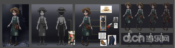 维多利亚时代始于1837年,结束于1901年,这个时期的欧洲女性们开始在社会中扮演更为重要的角色,她们的衣着打扮也更加跳跃、活泼,同时也会偏向男性化。《第五人格》中的草帽少女,中分式短发精致、干练,带着破旧感的草帽和围裙,则体现了劳作时的辛苦。而沾着污渍的牛仔裤,则是当时工人身份的一种标志。