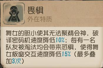 畏惧:破译速度降低10%。队友越少交互速度越慢,注定是个靠队友的buff。