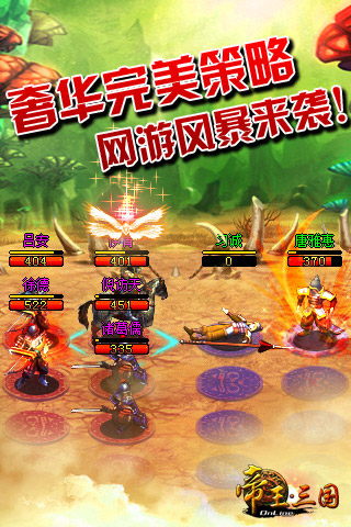 《帝王三国》是一款三国题材的策略战争网游。精彩绝伦的战斗模式,热血沸腾的万人国战,让人欲罢不能!群雄兵戎战场见,万人攻城美名留!承袭三国辉煌,成就王者雄风!携名将一统天下,就待你我![详情]