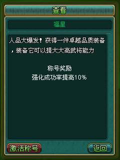 v1.33版本中依托成就系统,设立了称号系统。几乎全部高级、终极成就都有相对应的称号,部分低级、中级成就也有对应称号。不同品质称号将以不同颜色显示,只要将称号激活,聊天频道中发言或涉及您的系统消息,都会将您选择激活的称号显示于您ID后。部分称号可以提供特定的能力加成,例如有提升攻击20%的称号,有提升防御20%的称号,有提升攻击速度10%的称号…,不同的称号配合您的策略将带给您更多的选择!