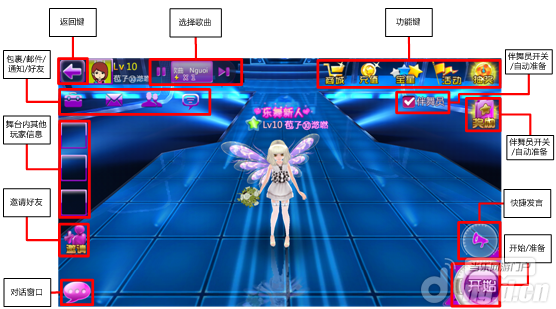 进入舞台场景后,玩家可以在该场景内进行各种操作。