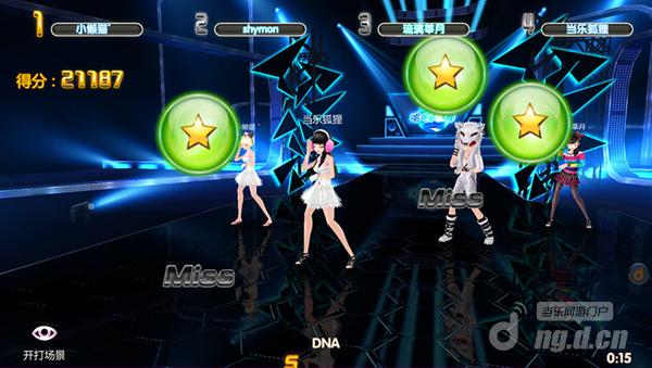接下来就到了正式环节——跳舞。《唱吧炫舞》的玩法是随着音乐的节奏戳出现在屏幕的泡泡,连P可以给你SHOW TIME(这里的舞蹈动作可以用钻石购买的,毕竟是可以拿来秀的东西,酷炫光环迷倒一大片啊有木有)。作为一只反应慢星人,小编从来玩不转这类游戏(比如节奏大师),MISS满屏也是美如画!但是据知情人士反应说这款游戏入门蛮简单的,前期的歌曲难度不是很大,等到一定的级别会出现略微变态的情况,满屏的泡泡需要绝对的节奏感以及冷静的操作,对泡泡出现的位置也需要烂熟于心(建议爱激动星人给自己的手机屏幕买个保险)。