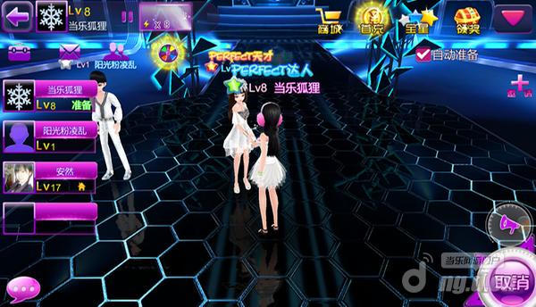 房间里陆陆续续进来一些玩家,在等待选歌的时候,小编主动走过去跟其他的玩家互动,只要靠近并点击目标,然后选择动作。羞涩的狐狸小编不敢去主动找其他玩家,正愣在那里发呆的时候,一位白衣翩翩少年径直向我走过来(啊他真帅气魅力四射配我恰到好,他要做什么他要做什么??)他居然吻了我!然后潇洒离去不留一片云彩,醉了醉了——小编一把年纪也有今天!可惜的是过于激动按截图键死命按不出来啊!万年单身狗的春天都不给我机会拍照留念啊!!于是小编愉快地和另一个女玩家握手示意,截图截图给大家看看这游戏的互动还是蛮有趣的!