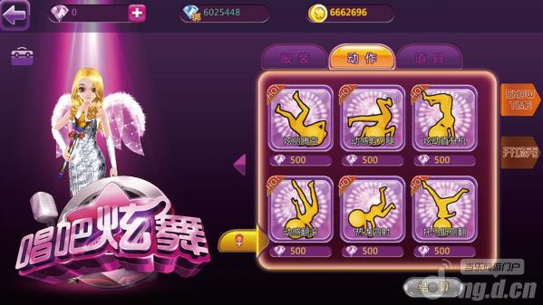 动作商城分为开场秀和showtime两种,开场秀是每首歌曲开始前的角色动作展示,showtime为歌曲进行中showtime的动作展示。