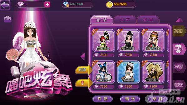 商城中共分为三大部分:服装商城,动作商城,道具商城。