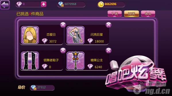 点击“结算”按钮,弹出结算窗口,会结算您当前角色上试穿的所有服装,在屏幕的右上方,您可以根据您的需要选择结算道具的时限。