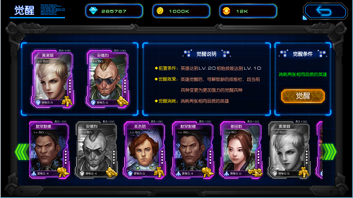 当指挥官达到20级,且自带技能达到10级满级时,可进行觉醒来提升卡牌的数值。消耗2张同品质的未进阶卡牌或者1张已进阶卡牌可以对卡牌进行觉醒。