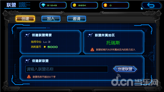 当玩家主城指挥中心达到3级时,可消耗5000金币在玩家所在地区建立联盟