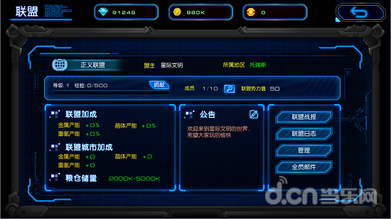玩家也可选择加入联盟,玩家能加入在所在区域建立的联盟以及在本区域拥有城池的非本区域联盟