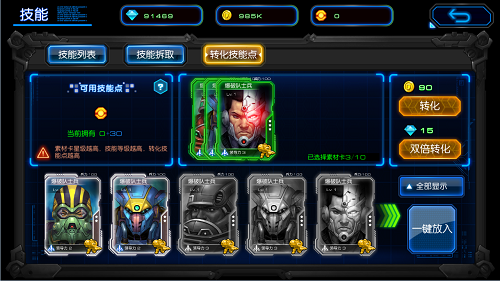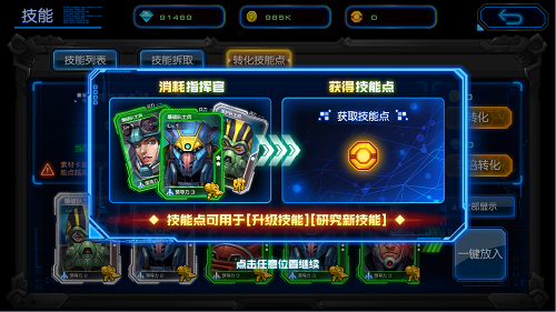 1、分解无用的指挥官卡牌可以获得技能点