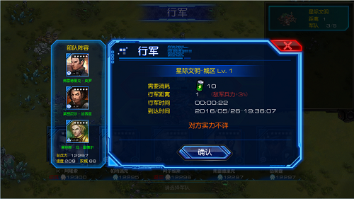 中立无颜色,敌人显示为红色,可以进行出征,标记指令