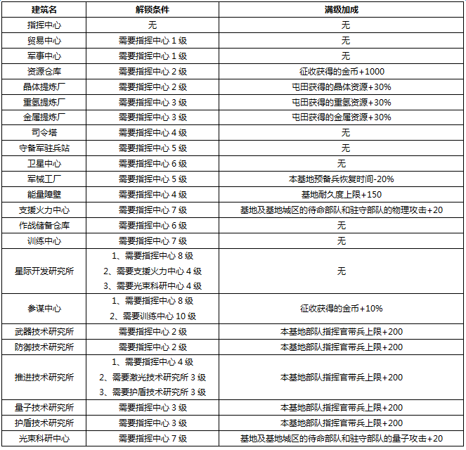 星际要塞建筑设施简介