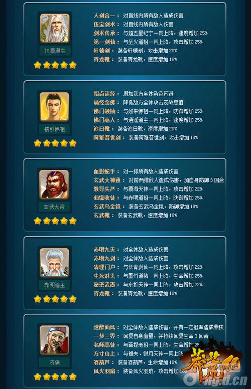 五星英雄中,值得一提的是济癫,技能犹如其名一般。迷醉先风能对地方造成一定概率的眩晕,冷却对方的伤害输出。一梦三界可以回复自身的血量,并且持续回复生命3个回合。与菩提老祖、樵夫、银月天神一同上阵,增加生命25%,防御增加28%。装备凤火羽扇,攻击立马增加18%。