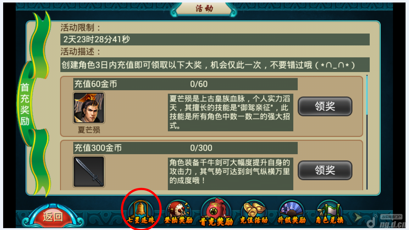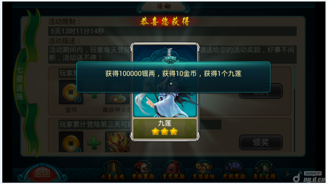 点击七星连珠可以领取丰厚奖励,