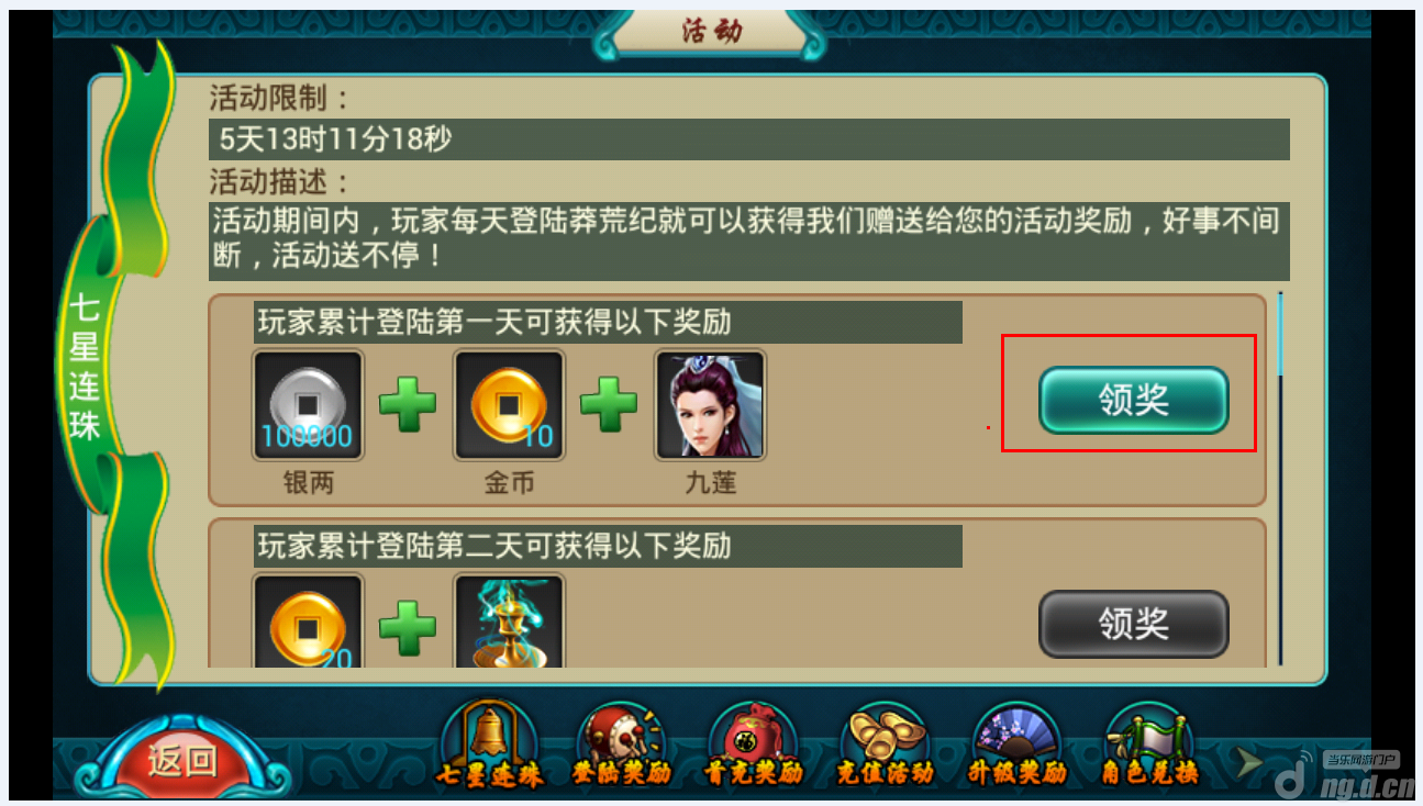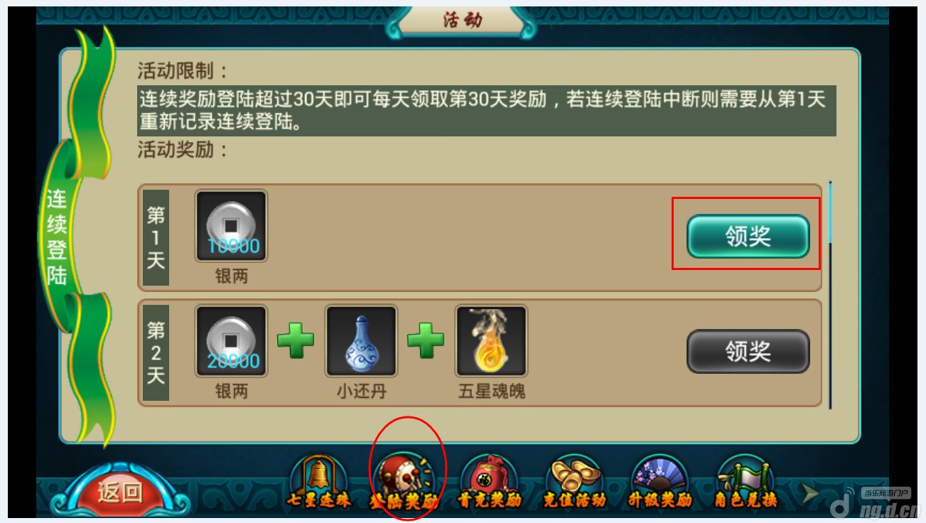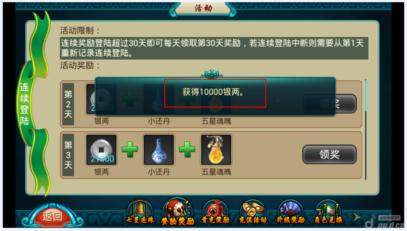 点击登录奖励,是领取连续登录奖励,如图