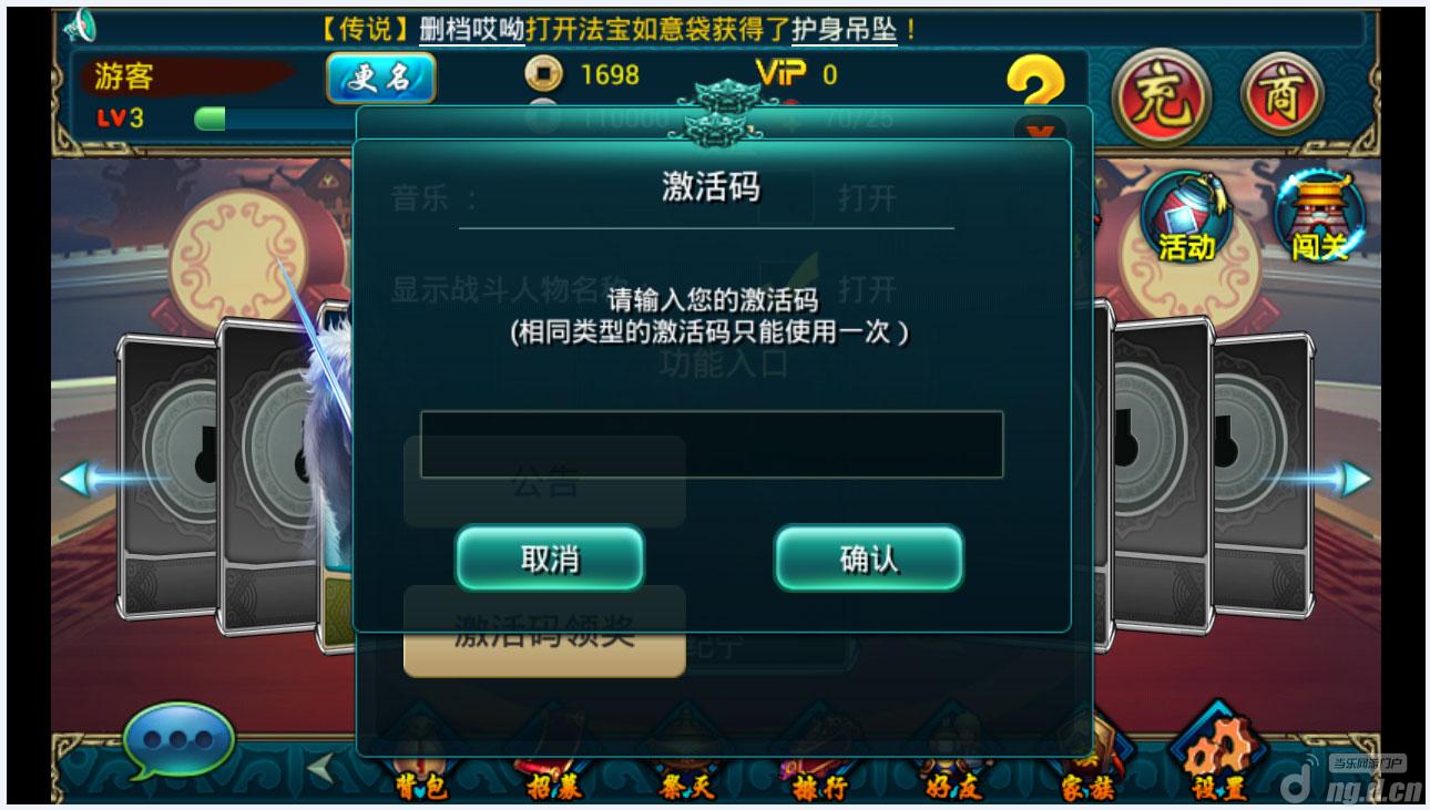 点击激活码领奖,是进入领取礼包,输入礼包代码,获得对应的礼包奖励