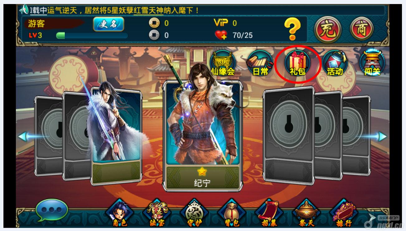 封测期间会每天发放金币方便大家更好的体验游戏,领取的步骤是进入游戏页面,点击礼包如图:
