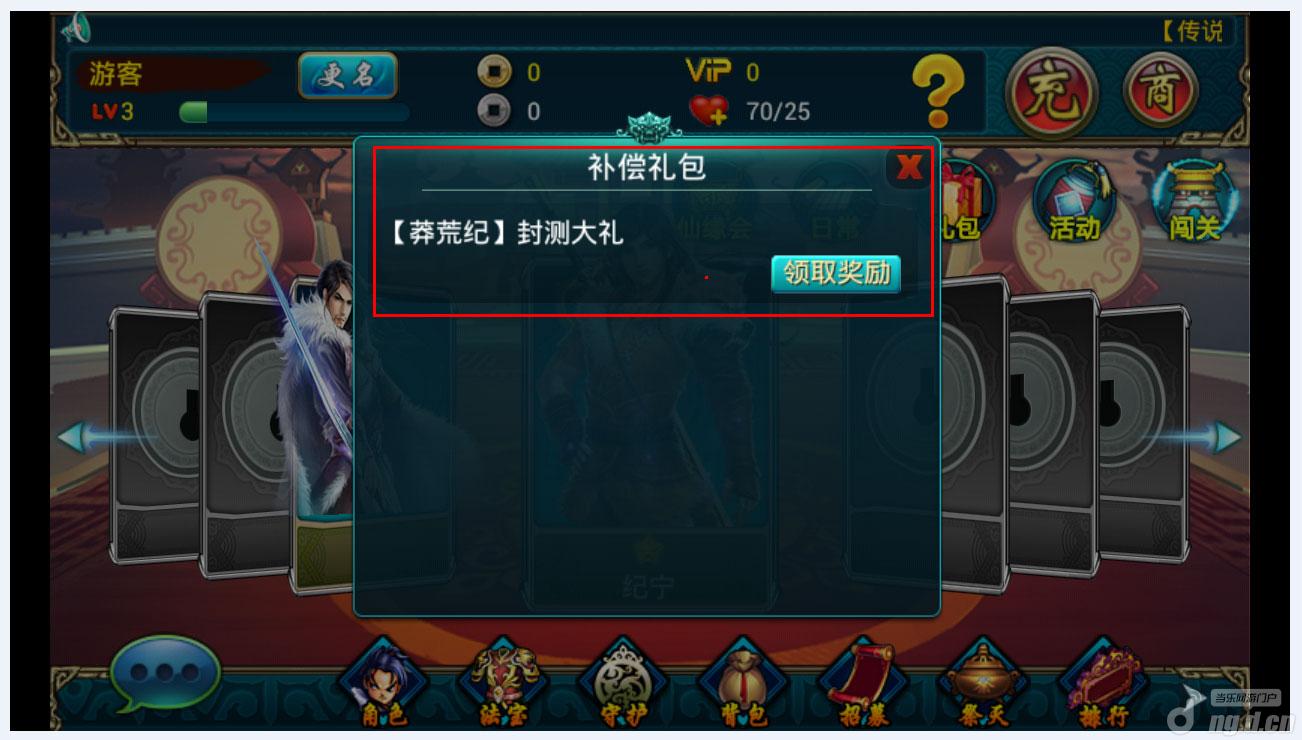 可以看到莽荒纪封测大礼,点击领取,如图: