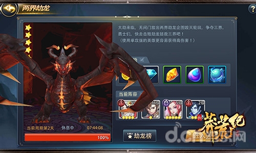 挑战两界劫龙,是修行历炼的必经过程。每期劫龙持续最多五天,每天19:50开始助威活动,对今日伤害榜的第一名进行竞猜。20:00-20:20为挑战时间,期间对两界劫龙造成伤害越多,排名越靠前,奖励越高。最后一下击杀两界劫龙的玩家还可获得额外击杀奖励。