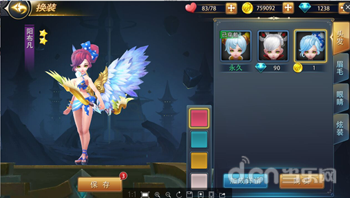 2、换装系统中可更换头发、眉毛、眼睛、时装。