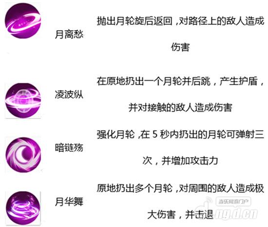 上古月神—蓝碎月武器使用的是苍月轮。蓝碎月技能主要分为月离愁、凌波纵、暗链殇、月华舞。蓝碎月是远程职业,在战场上有持续的输出能力,大家在战斗中使用蓝碎月角色与敌对角色进行战斗时,控制好角色的走位,要与敌对角色之间的保持一定的距离,进而发挥出这个职业技能的最大特点。