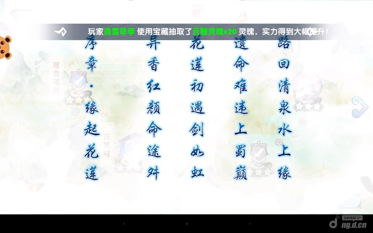 指引:新手指引每款游戏都有,小偌之所以单独说下这个功能是因为,在游戏内全程使用的是丽颖头像做为引导,虽然女神看着好,看着美,但看久了也会有视觉疲劳,不知道每天这样看下去,时间久了,以后会不会看到她的电视剧就头疼。。不过这样的水墨风开篇到是正中下怀,小偌超爱的!